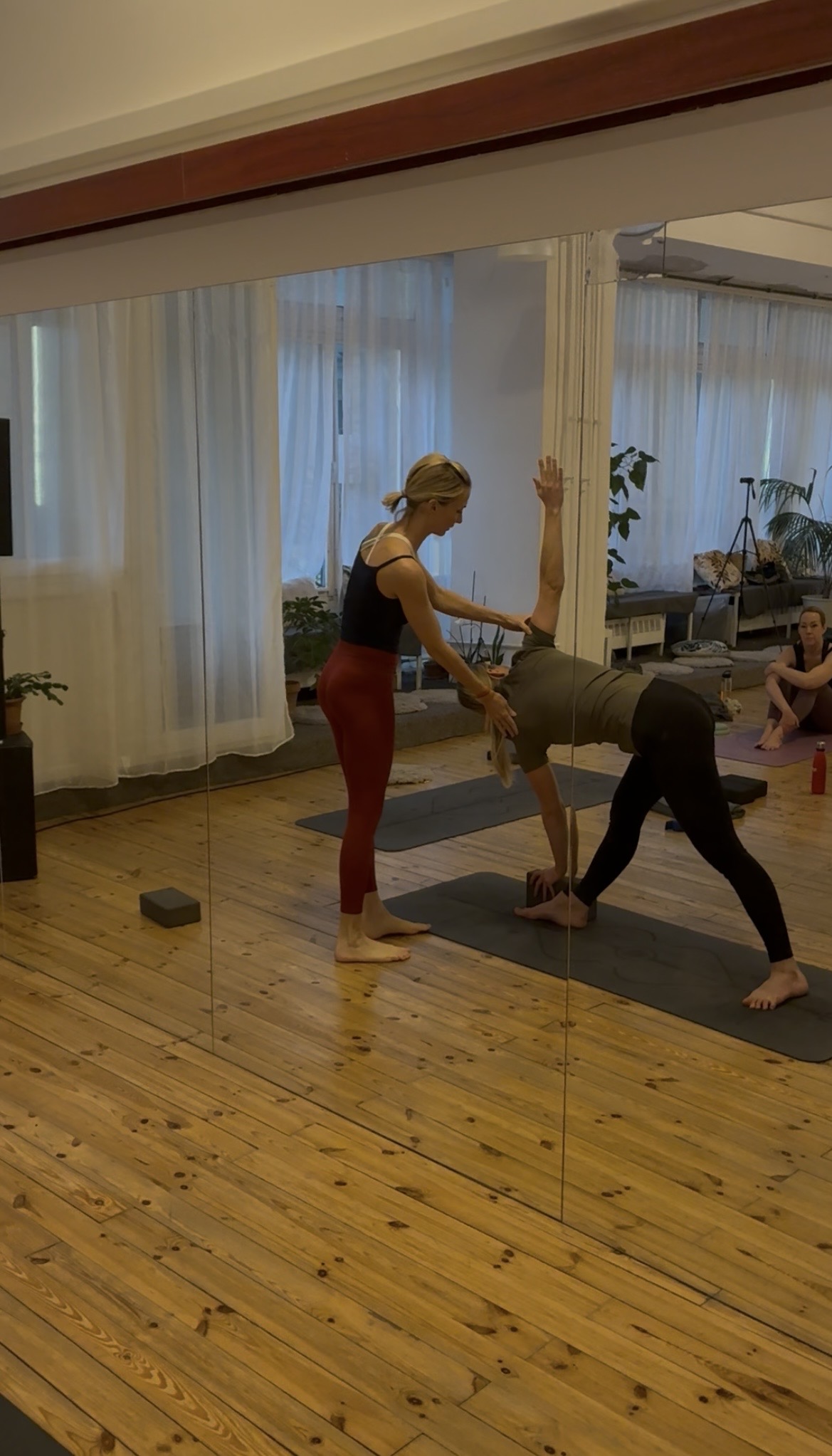 Ezen a workshopon azonban mindenki megtapasztalhatta a kézzel történő igazítás jótékony hatását, és azt is, milyen sokat segített a személyes figyelem abban, hogy mélyebben megérkezzünk egy pózba, biztonságosabban és tudatosabban gyakoroljunk.